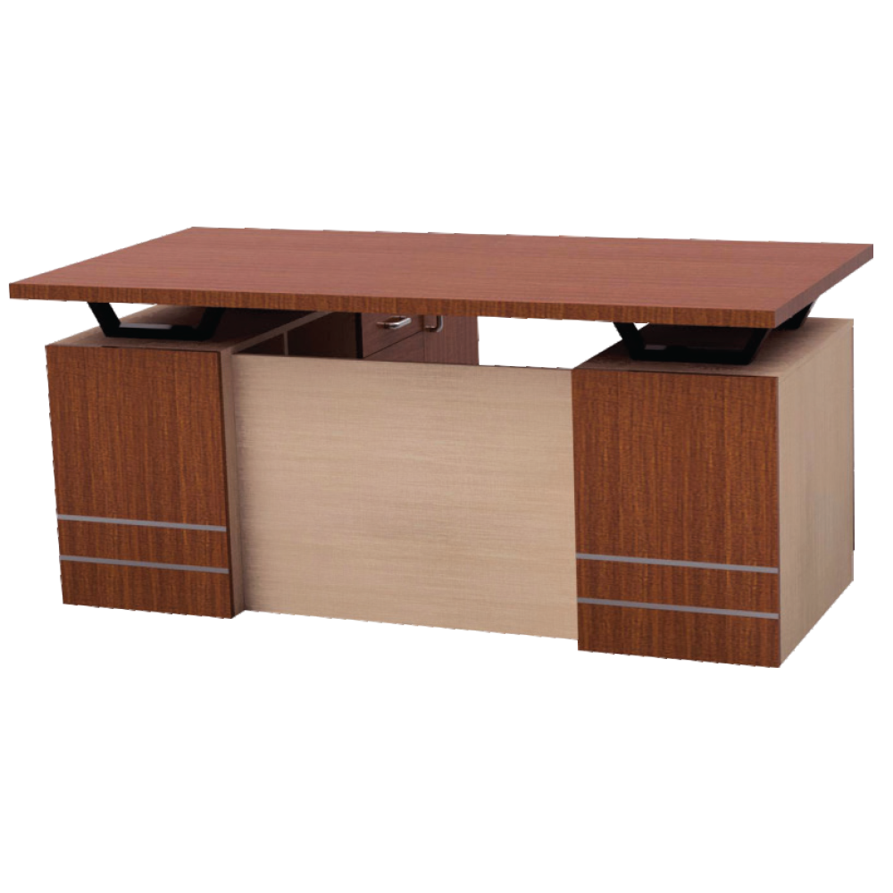 A premium executive office desk with a floating tabletop design, integrated dual-side storage, and a refined two-tone wooden finish—perfect for modern leadership workspaces and professional environments.