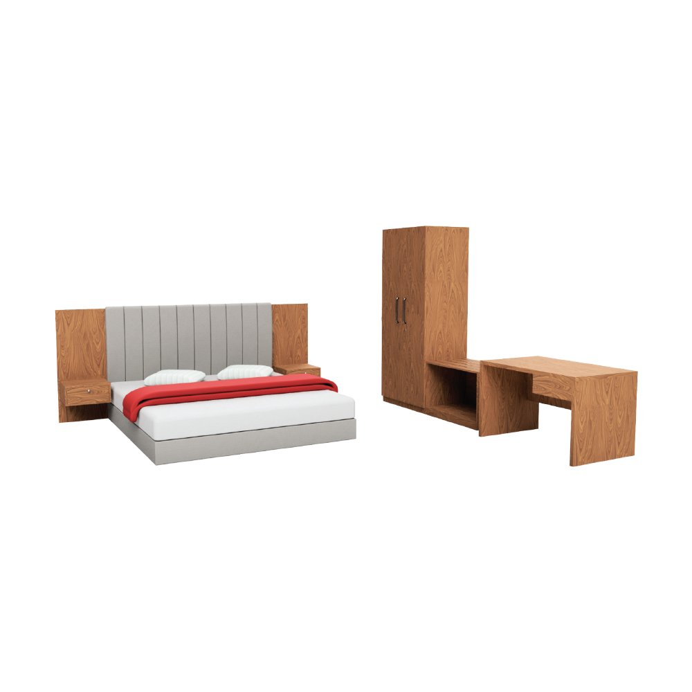 This single bed features a clean, box-style design with a warm walnut brown laminated finish that adds a classic and elegant touch to any room. Its simple structure ensures maximum strength and stability, making it ideal for heavy daily use.